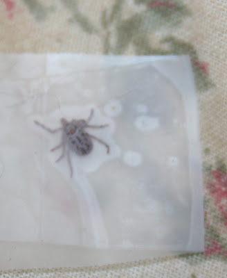 But ticks still manage to find their way into the house. We check the dogs daily for stowaways and we check ourselves when we come in from gardening. Light colored clothing makes them easier to spot but not infrequently we will spy one crawling on the furniture or floor, most definitely having traveled indoors on our clothing.